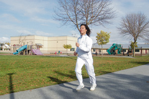 岑潔儒說,7月底接到通知時(shí),雖還沒最后確定路程和地點(diǎn),但她已開始自我訓(xùn)練。報(bào)名表上提到,跑步路程在200米到400米之間,但現(xiàn)在溫冬奧籌委會(huì)確認(rèn)她傳火炬路程是300米,火炬長(zhǎng)90厘米,重量3.5磅。雖然VANOC指明傳遞方式除了慢跑,也可以用走或快步走方式,一切以火炬手的體能條件做自我考慮,但岑潔儒堅(jiān)持跑完全程。她笑著說,還沒老到要用“走路”方式,不過,她最大的擔(dān)心是火炬重量。