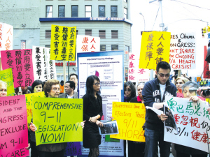 當(dāng)天有不少華人職工會(huì)的會(huì)員到場(chǎng)聲援,華人職工會(huì)也是超越姐妹樓聯(lián)網(wǎng)的組成者之一,居住在下東城的伍嬸代表發(fā)言,她說過去8年來華埠及下城的居民健康仍然被忽略,受到各種疾病的折磨,她與孫女于911后受毒空氣影響,她的肺部出現(xiàn)黑點(diǎn)、孫女患上哮喘,然而政府卻一直不肯正視有關(guān)問題。