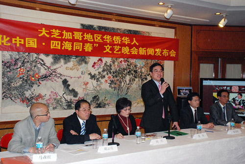 當(dāng)天的新聞發(fā)布會(huì)由謝云亮副總領(lǐng)事主持。黃屏在致辭中表示,他希望并相信芝加哥各社團(tuán)能夠團(tuán)結(jié)協(xié)作,共同把這場(chǎng)演出活動(dòng)組織好,我們要盡好地主之誼。他還希望廣大華僑華人朋友,積極前往觀看演出。黃屏?xí)略谂c記者談話時(shí)說(shuō),這次籌辦活動(dòng),他會(huì)親自掛帥。他說(shuō),我們要讓中華文化登上海外的大雅之堂,有那么多熱心的僑胞們的支持,我們有信心把這次活動(dòng)搞得很成功。會(huì)上,籌委會(huì)與總領(lǐng)館共同向各社團(tuán)發(fā)出邀請(qǐng)函,誠(chéng)摯邀請(qǐng)社團(tuán)出席并給予大力支持。(張大衛(wèi)、胡大江)