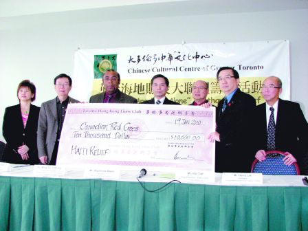 在當(dāng)日記者會(huì)上,多個(gè)機(jī)構(gòu)以不同方式為海地大地震賑災(zāi):湛山精舍捐款1.5萬元﹑多倫多香港獅子會(huì)捐款1萬元﹑多倫多雅賢獅子會(huì)5000元﹑多倫多柏麗獅子會(huì)5000元等。而也有團(tuán)體則以攤位義賣物品﹑發(fā)動(dòng)會(huì)員捐獻(xiàn)……務(wù)求盡一分力﹑發(fā)一分光,幫助海地災(zāi)民早日恢復(fù)正常生活。