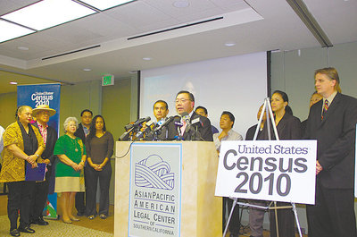 中新網(wǎng)1月27日電 據(jù)美國(guó)《世界日?qǐng)?bào)》報(bào)道,“花十分鐘,回答十個(gè)問(wèn)題,讓屬于我們的利益回到我們手中”。洛杉磯地區(qū)亞太裔小區(qū)25日聯(lián)合發(fā)起2010全國(guó)人口普查亞太裔總動(dòng)員,洛杉磯市長(zhǎng)維拉萊構(gòu)沙和亞太法律中心主任郭志明站臺(tái),呼吁亞裔民眾踴躍參與,讓每一位居民都算入。