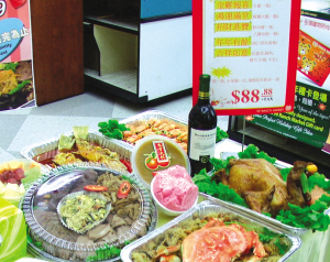 經(jīng)濟不好,團年飯改在家里吃吧!大華超市公關(guān)經(jīng)理曹其崢表示,他們根據(jù)市場的判斷,認為許多華裔人士會追求經(jīng)濟實惠的家庭套餐,如果可以讓他們在家里就可以座享餐館的美食,將會受歡迎。因此,他們推出了力求薄利多銷,“百元有找”的新春套餐。新春套餐以“金雞報喜”、“鴻運滿堂”、“招財進寶”、“年年有余”等吉祥話命名,包括全雞、大蝦、肉蟹、黃金魚及魯菜拼盤,另外贈送紅酒、水果盤、發(fā)糕及年糕,全部套餐只要88.88元。
