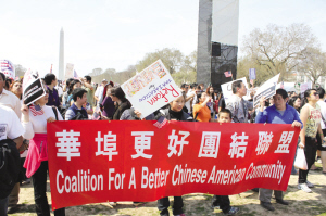 估計(jì)有1千多華人參與了21日下午在華府國(guó)家廣場(chǎng)舉行的移民集會(huì)和游行,這是近年來(lái)華人參與移民權(quán)益游行最踴躍的一次。