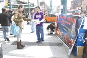 由多倫多華人團(tuán)體聯(lián)合會(huì)副主席王清官、楊學(xué)武及黃政等,24日中午偕同一班義工,在中區(qū)華埠拉起“愛心多倫多,真情系玉樹”的橫額,為青海玉樹的7.1地震災(zāi)民展開街頭募捐活動(dòng)。在熙來攘往,人潮如鯽的士巴丹拿與登打士西街街角,一眾義工忙于呼吁路人踴躍捐助。當(dāng)中,除了路過的華人樂于捐助外,不少主流人士,在了解募捐目的后,亦紛紛解囊相助,益見人間真愛,無分國界地域。