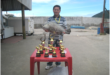 23日中午,大家滿載著喜悅和收獲陸續(xù)回到岸邊。在簡(jiǎn)短的頒獎(jiǎng)儀式上,頒發(fā)了獎(jiǎng)杯和獎(jiǎng)金。會(huì)長(zhǎng)吳耀宙先生以單條最重獲得第一名,成績(jī)是7.18kg,并獲得獎(jiǎng)金800元;獲得第二名的是來(lái)自韓國(guó)的DANIEL李先生,成績(jī)是5.98 kg,并獲得獎(jiǎng)金500元;獲得第三名的是ANDRE陳先生,成績(jī)是5.00 kg,并獲得獎(jiǎng)金300元。7條船上的優(yōu)勝者也得到獎(jiǎng)杯和紀(jì)念品。