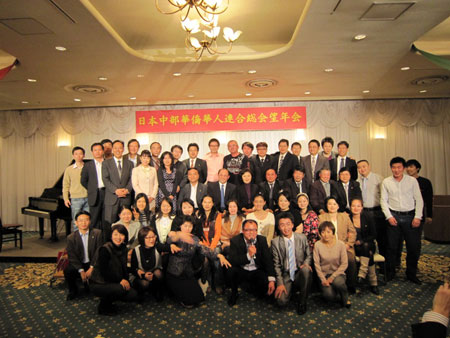 中新網(wǎng)12月16日電 據(jù)日本新華僑報網(wǎng)報道,12月13日,日本中部華僑華人聯(lián)合總會2009年度忘年會在三重縣合歡鄉(xiāng)酒店舉行。中部地區(qū)13個僑團(tuán)、3家中資企業(yè)及各界華僑華人代表80多人歡聚一堂,中國駐名古屋張立國總領(lǐng)事出席活動并講話。