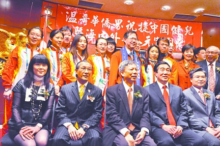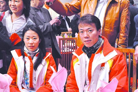 500多名僑界代表當(dāng)日共同守候功臣們的到來,奪金的花樣滑冰雙人滑選手申雪和趙宏博剛到場,便受到英雄和明星式的待遇,從進(jìn)場到坐下便好像“手握不完、相影不完、名簽不完!彪S后,王冰玉、周妍、岳清爽和柳蔭這冰壺4姐妹入場,又引發(fā)新一輪高潮,場面極為熱鬧,閃光燈亮個(gè)不停。
