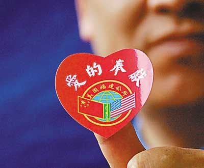 福建公所主席鄭時甘在東百老匯的募捐攤位上向每位捐款的民眾贈送一張印有“愛的奉獻”字樣和福建公所標(biāo)志的紅色心型貼紙,一方面表示對捐款者的感謝,一方面希望僑胞能將貼紙傳遞給更多華人,使更多民眾為青海災(zāi)區(qū)獻上愛心。