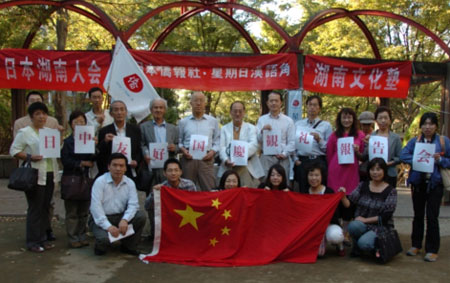 日本關(guān)東和平友好會(huì)會(huì)長(zhǎng)、首屆日本湖南友好使者花園昭雄,日本滔天會(huì)代表宮崎黃石等日本友人,日本樂(lè)樂(lè)中國(guó)電視臺(tái)董事歐陽(yáng)樂(lè)耕,日本湖南人會(huì)副會(huì)長(zhǎng)胡芳,日本僑報(bào)社總編輯段躍中等華人代表,不僅報(bào)告了參加天安門(mén)觀禮的感動(dòng),還為大家介紹了從北京帶回來(lái)的中國(guó)60華誕慶典報(bào)紙以及國(guó)慶專(zhuān)題郵票、圖片等,花園昭雄還為大家介紹了他們夫婦共同創(chuàng)作的日文俳句《國(guó)慶節(jié)》,受到大家的好評(píng)。