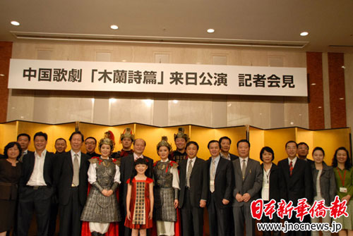 據(jù)介紹,花木蘭代父從軍的故事是中華民族代代相傳的感人篇章,2004年,這一故事被創(chuàng)作成歌劇《木蘭詩篇》,不但在國內(nèi)受到好評,還在美國、奧地利上演,贏得國際聲譽(yù)。這次赴日演出,《木蘭詩篇》又經(jīng)過中日兩國藝術(shù)家的重新制作,總政歌舞團(tuán)團(tuán)長彭麗媛任藝術(shù)總監(jiān),雷佳、譚晶、王麗達(dá)等主演木蘭,中國指揮家李玉寧和日本指揮家堤俊作將聯(lián)合執(zhí)棒指揮日本皇家交響樂團(tuán)演奏,中方演出隊伍達(dá)110多人。