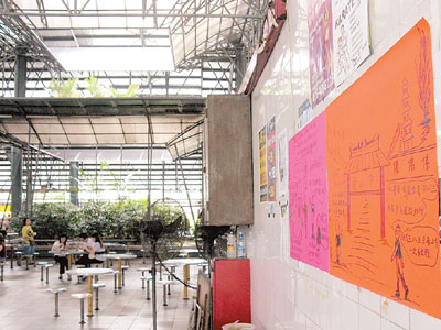 記者前往峇央峇魯巴剎飲食中心時(shí),一踏入?yún)s看到一張接一張的漫畫大字報(bào),原來是由一名張姓相命師親手動(dòng)筆,通過“老夫子和大番薯”卡通人物訴說馬華亂象,順?biāo)浦,若有者“迷失”,能向他?qǐng)教,指點(diǎn)迷津。