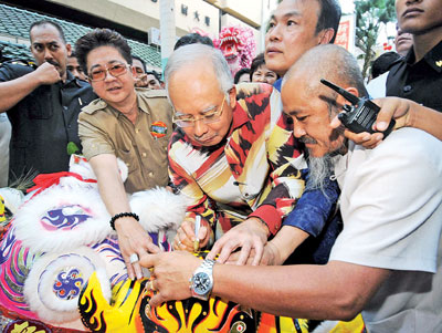 中新網(wǎng)2月12日電 據(jù)馬來西亞《光華日報》報道,馬來西亞首相拿督斯里納吉11日下午在農(nóng)歷新年前訪茨廠街,與各小販商家和普羅大眾拜早年迎接金虎。這也是納吉自去年4月4日上任以來第3度訪茨廠街。