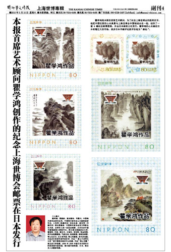 中新網(wǎng)5月18日電 據(jù)日本《關西華文時報》報道,5月15日,該報首席藝術顧問曲學鴻創(chuàng)作的紀念上海世博會郵票在日本發(fā)行。為了紀念上海世博會的勝利召開,他把中國壯麗的山水美景與上海世博會中國館結合在一起進行繪畫創(chuàng)作,創(chuàng)作了一套6幅紀念郵票圖案,并由日本郵便株式會社發(fā)行。