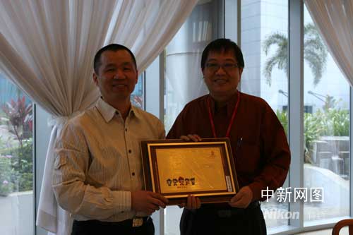 中國新聞社副總編輯夏春平一行今天拜訪和考察了新加坡報(bào)業(yè)控股集團(tuán)旗下的《聯(lián)合早報(bào)》及《聯(lián)合晚報(bào)》、《新明日?qǐng)?bào)》、《我報(bào)》、聯(lián)合早報(bào)網(wǎng)!堵(lián)合早報(bào)》總編輯林任君先生對(duì)中國新聞社的來訪表示歡迎。他感謝中國新聞社多年來為海外華文報(bào)紙?zhí)峁┝硕嘣皶r(shí)鮮活的新聞資訊產(chǎn)品,《聯(lián)合早報(bào)》及其屬下的華文報(bào)紙也是中新社新聞產(chǎn)品的受益者。圖為中國新聞社副總編輯夏春平代表中國新聞社向《聯(lián)合早報(bào)》總編輯林任君(右)先生贈(zèng)送奧運(yùn)紀(jì)念品。