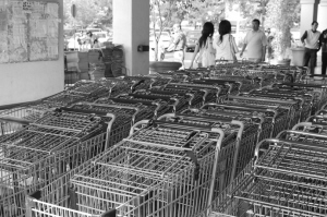 景氣差,超市買菜的人減少了。(美國《僑報》/邱晨攝)