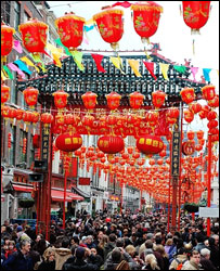 近年倫敦新年慶祝活動吸引的華人華僑、英國本地人乃至世界各國的游客超過20萬人。為迎接牛年,倫敦的唐人街區(qū)已掛滿了大紅燈籠,過年氣氛濃厚。倫敦華埠商會會長吳國強(qiáng)介紹說,今年的慶春活動從大年初一在唐人街的舞獅表演拉開帷幕;年初六在唐人街六角亭和石獅子旁開設(shè)春節(jié)攤位。