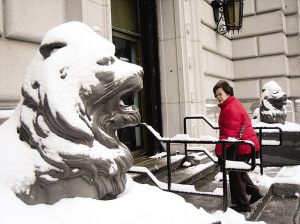 中新網(wǎng)3月4日電 據(jù)美國(guó)《星島日?qǐng)?bào)》報(bào)道,3月2日,紐約地區(qū)受到入冬以來最大的狂風(fēng)雪侵襲,據(jù)國(guó)家氣象局資料,紐約市1日至少下了1呎雪,這場(chǎng)大雪不但造成了紐約市車流速度大減,更讓紐約地區(qū)各機(jī)場(chǎng)取消了超過800班次的飛機(jī)。華埠亦面對(duì)人流銳減,商家門庭冷清的局面。