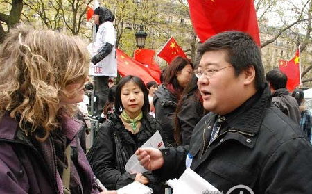 4月19日,法國(guó)巴黎的共和國(guó)廣場(chǎng)上,一個(gè)戴著眼鏡的中國(guó)人在慷慨激昂地發(fā)表演講。其流利的法文,圓潤(rùn)的嗓音,縝密的思維,加上富于感染力的表達(dá),為現(xiàn)場(chǎng)很多人所折服。這篇題為《不能讓祖國(guó)受委屈》的演講稿和現(xiàn)場(chǎng)視頻,隨后迅速在網(wǎng)絡(luò)上流傳!斑@個(gè)胖子的法語(yǔ)真不賴(lài),我喜歡他!”“當(dāng)他在某句結(jié)尾提高音調(diào),握緊拳頭時(shí),雖然我一句都聽(tīng)不懂,但有一種熱血上涌的感覺(jué)!