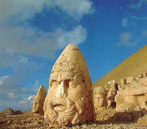人像山是我自己編的名字,它的音譯應(yīng)該為內(nèi)姆魯特山。有些臺(tái)灣旅游書上把它叫作人頭山,聽著很是恐怖。雕像佇立在海拔2150米高的內(nèi)姆魯特山頂,這里其實(shí)是科瑪吉內(nèi)的國王安提俄克斯一世的陵墓。在這個(gè)英俊的國王的陵墓前面,列著他喜愛的神明雕像,他自己的雕像也擠身其中。我想,他是希望自己死后能入“仙班”,或者說,他本就是神……