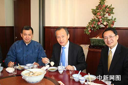 崔天凱大使接著來到中華街上的老字號東榮酒家,和神戶華僑總會會長鮑悅初、株式會社東榮商行代表王銳輝等當(dāng)?shù)厝A僑代表一邊吃餃子一邊交談,了解餃子事件的各種負(fù)面影響。