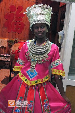 當(dāng)晚,在熱情的中國家長帶領(lǐng)下,漢語橋選手“黑珍珠”闖三關(guān):對山歌、喝米酒、擊鼓后,順利入住苗家,當(dāng)穿上苗族服裝,“黑珍珠”興奮地在鏡子面前轉(zhuǎn)了幾圈,表達喜悅的心情。(李湘)