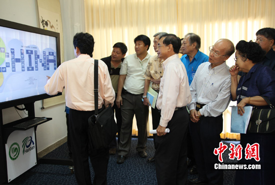 在孔子課堂“中國文化體驗(yàn)中心”,幾名高年級(jí)的學(xué)生正在引導(dǎo)50多位來自泰國北部清萊、清邁、南邦等8個(gè)府13所學(xué)校的理事和漢語教師,參觀孔子課堂利用現(xiàn)代多媒體科技手段打造而成的中國文化體驗(yàn)設(shè)備。“看,用手點(diǎn)這里就可以讓古箏發(fā)出聲音!币幻麑W(xué)生向記者展示著。用手指輕觸電子觸屏就能讓各色的“中華文化大餐”躍然于屏幕之上,中國傳統(tǒng)器樂展示、國粹京劇臉譜拍照和中國傳統(tǒng)剪紙?bào)w驗(yàn)更是令參觀者們個(gè)個(gè)豎起大拇指,連連叫好。