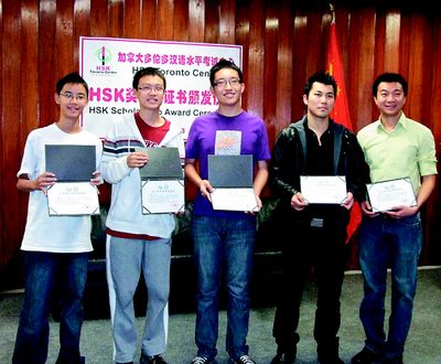 多倫多地區(qū)這次獲得獎學金的考生共有七位,他們于2008年參加HSK考試成績優(yōu)異而獲獎學金,并分別于2009年暑期前往北京語言大學、山東師范大學、北京語言文化大學、上海大學、華東師范大學、南京師范大學及黑龍江大學,與來自五大洲的漢語學習者和愛好者一同學習漢語和了解中國文化,并到中國一些名勝古跡參觀旅游。