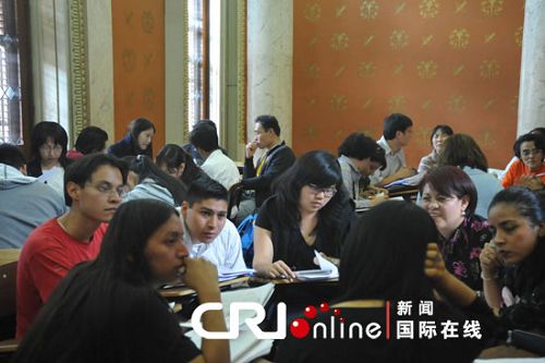 墨西哥國立自治大學(xué)孔子學(xué)院院長阿科斯塔表示,隨著“漢語熱”和“中國風(fēng)”近年來在墨西哥的悄然興起,越來越多的墨西哥學(xué)生希望來到學(xué)院學(xué)習(xí)漢語,但目前學(xué)院僅僅有5名漢語教師,遠(yuǎn)遠(yuǎn)不能滿足現(xiàn)在學(xué)生的需求。所以現(xiàn)在需要培養(yǎng)墨西哥自己的漢語教師。阿科斯塔說:“因?yàn)楝F(xiàn)在我們也沒有很多老師,但是還有很多人想學(xué)習(xí)漢語,但是沒有老師怎么辦呢?所以我們需要培養(yǎng)我們自己的老師,墨西哥的老師,我覺得這樣我們可以滿足墨西哥人(學(xué)漢語)的要求!