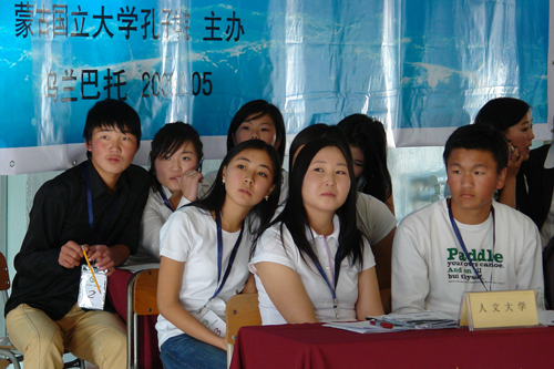 蒙古國(guó)國(guó)立大學(xué)副校長(zhǎng)仁欽巴特爾在開(kāi)幕式上致辭說(shuō),蒙中兩國(guó)山水相依,友好關(guān)系源遠(yuǎn)流長(zhǎng)。現(xiàn)在蒙古國(guó)希望了解中國(guó)文化、學(xué)習(xí)漢語(yǔ)的人越來(lái)越多,蒙古國(guó)國(guó)立大學(xué)孔子學(xué)院在這方面做了大量工作。
