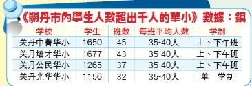 “目前關(guān)丹市區(qū)內(nèi)只有培才華小、中菁華小、公民華小及光華華小的學(xué)生人數(shù)超過(guò)1000人。不過(guò),由于學(xué);驹O(shè)施足以應(yīng)付需求,因此未出現(xiàn)所謂學(xué)生人數(shù)爆滿的情況。