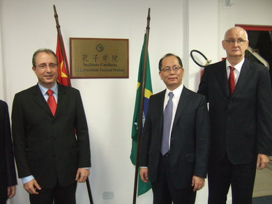 圣保羅州立大學(xué)校長(zhǎng)代表、湖北大學(xué)校長(zhǎng)代表、孔子學(xué)院院長(zhǎng)、圣保羅州議員等先后致辭,贊揚(yáng)在中巴雙方的努力下,孔子學(xué)院一年來取得的成績(jī)。
