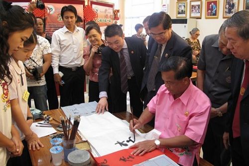 羅勇府府尹沙榮蓬∙林泰、泰國(guó)教育部民教委秘書長(zhǎng)代表甘恒君、泰國(guó)教育部民教委漢語(yǔ)項(xiàng)目主任賴芝華 、羅勇府第一區(qū)教育局長(zhǎng)通猜·滿空、泰國(guó)東部華文民校聯(lián)誼會(huì)理事會(huì)榮譽(yù)顧問(wèn)梁冰、主席張步青、明滿學(xué)校校長(zhǎng)陳松等嘉賓共同出席了當(dāng)天的剪彩儀式,并參觀了孔子課堂的圖書展覽和各個(gè)文化項(xiàng)目。