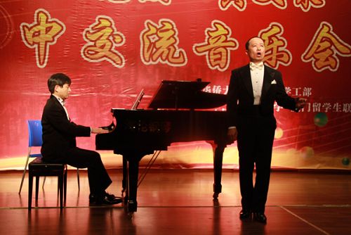 中新網(wǎng)3月12日電 據(jù)華僑大學網(wǎng)站消息,隨著深情而婉轉(zhuǎn)的鋼琴曲《愛之夢》響起,11日晚,由華僑大學宣傳部、學工部、音樂舞蹈學院主辦,日本國立宮崎大學、廈門留學生聯(lián)誼會協(xié)辦的慶祝華僑大學建50周年“華園藝苑”之日中交流音樂會在該校的明德堂拉開帷幕。日本著名鋼琴演奏家、日本國立宮崎大學教授葛西寬俊與閩籍男高音歌唱家黃文泉聯(lián)手引領華園師生走進迷人的音樂世界。