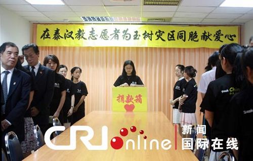 當(dāng)天下午,國家漢辦駐泰國代表處會議室氣氛莊嚴(yán)肅穆。大家一同觀看了志愿者自己制作的視頻《我們在一起,永遠(yuǎn)不放棄》。隨后,全體人員為青海玉樹震災(zāi)中的遇難者默哀三分鐘,大家神情凝重,淚光閃閃。志愿者代表們在現(xiàn)場還紛紛解囊為災(zāi)區(qū)同胞捐款。