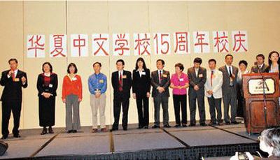 該校第二任總校長考建華在代表歷屆總校長發(fā)言時回顧說,15年來,華夏中校的教學質(zhì)量提高,學生在地區(qū)各項比賽和考試上都取得優(yōu)異成績,同時還舉辦了各種文藝、體育活動,豐富了社區(qū)的文化。她說,華夏的成功體現(xiàn)了一種無私的愛,以及以集體利益為先的精神,這就是華夏精神。