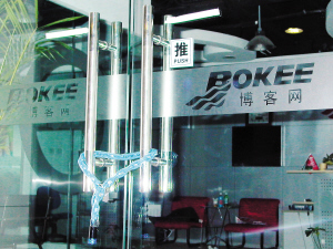 昨天下午,記者來到新中關大廈10層看到,博客網(wǎng)大門緊鎖,里面空無一人(見圖)。坐在公司外面座位上的兩個人對記者說,他們就是被裁的員工,從十月底開始,公司就已經(jīng)像現(xiàn)在這樣關門了。對于網(wǎng)上的帖子,他們說一切內容屬實,公司欠發(fā)員工7、8月工資的40%和9、10月的全額工資,以及保險、公積金等,共有四五十人被欠薪,每人大概欠一萬多元!拔椰F(xiàn)在還沒找到新工作。聽說今天有人可能會回這兒,就趕來公司門口等著要薪水,現(xiàn)在也沒見到人!币晃粏T工無奈地說。