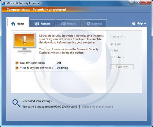 周二,Morro的界面剛剛在互聯網上曝光,周三就有了更新。從圖片可以看出,Morro已被重新命名為Microsoft Security Essentials。Morro只是開發(fā)代碼,按照微軟的習慣,產品正式推出后會有一個新名稱。
