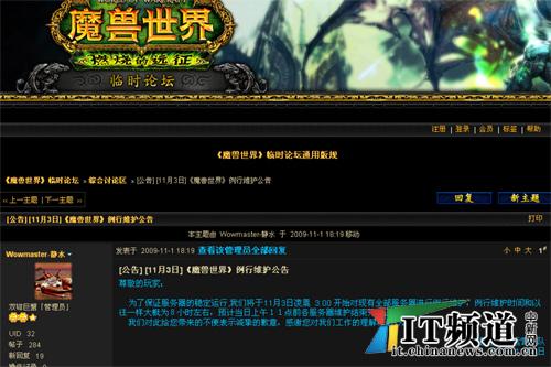 昨晚,記者在《魔獸世界》中文官網(wǎng)臨時論壇發(fā)現(xiàn),網(wǎng)易已于1號晚上發(fā)布《魔獸世界》例行維護公告,公告稱,為了保證服務(wù)器的穩(wěn)定運行,將于11月3日凌晨 3:00 開始對現(xiàn)有全部服務(wù)器進行例行維護,停機時間預(yù)計為12小時左右。同時“客服電話服務(wù)”也將暫停12小時。 這比《魔獸世界》之前的例行停機維護時間稍長。