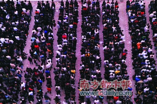 誰說今年企業(yè)招工難?過去一個多月,龍華富士康門口日日數(shù)千人求職,密度可比春運火車站,進人群易出人群難,站著睡覺不會倒,上個廁所得憋著。昨日凌晨5時左右,由于保安未上班無人看管,求職者更是擠倒欄桿,人仰馬翻,互相踩踏,幸無人員傷亡。