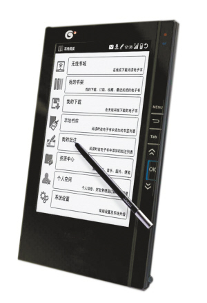 通體白色的機(jī)器,屏幕上古雅的國畫畫面,108種內(nèi)置正版書,著實吸引了不少人的圍觀,而這款機(jī)器正是由中國出版集團(tuán)公司推出的電子閱讀器,“這款電子閱讀器的推出標(biāo)志著中國出版集團(tuán)正式進(jìn)入電子閱讀器產(chǎn)業(yè),也是中國出版集團(tuán)從傳統(tǒng)出版集團(tuán)向新型出版集團(tuán)邁進(jìn)的重要一步”。中國出版集團(tuán)總裁聶振寧說。據(jù)現(xiàn)場工作人員介紹,這款電子閱讀器包括了中國出版集團(tuán)的所有圖書并都擁有電子版權(quán),可供讀者下載閱讀。而仗著內(nèi)容的優(yōu)勢,其閱讀器的市場銷售價在5000元左右,比市場上流行的閱讀器兩三千元的價格高出一大截。
