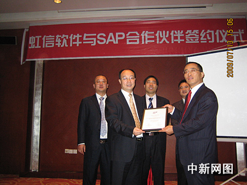 據悉,作為SAP在中國非常重要的信息化合作伙伴之一,虹信軟件將與SAP聯(lián)手協(xié)作為更多的客戶提供更加優(yōu)質的服務。這一將跨國公司的領先技術、先進管理理念與本土公司的資源、經驗有機結合起來的強強合作,被業(yè)界看成是未來中國信息服務業(yè)發(fā)展的新方向。SAP中國區(qū)副總裁唐杰攜虹信軟件董事長莫文偉、總經理任宗貴、副總經理劉嘉陵共同出席了本次簽約授牌儀式。