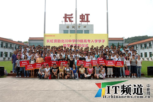 長虹公司2008年開始實施對北川中學高考錄取生的獎學金計劃,目前共計發(fā)放獎勵金額14萬元,惠及119人,極大激勵了北川中學高考學子及在校師生的學習熱情。