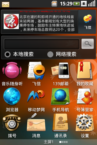 1、Ophone在主屏中嵌入了手機(jī)搜索欄,實(shí)現(xiàn)對(duì)手機(jī)內(nèi)容的一鍵搜索,同時(shí)它支持手機(jī)內(nèi)多種數(shù)據(jù)及互聯(lián)網(wǎng)的全面搜索;