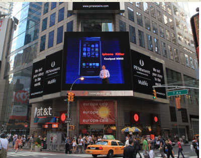 由于成為美國(guó)近一周來媒體關(guān)注的焦點(diǎn),作為紐約地標(biāo)建筑的時(shí)代廣場(chǎng)新聞電子大屏對(duì)《Yulong Launches Coolpad N900 in China to Combat iPhone》的新聞進(jìn)行了長(zhǎng)時(shí)間的播報(bào),中國(guó)手機(jī)新力量可能對(duì)iphone產(chǎn)生的沖擊引起了美國(guó)社會(huì)的廣泛關(guān)注,這也是國(guó)產(chǎn)手機(jī)首次亮相紐約時(shí)代廣場(chǎng)。