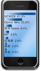 報告顯示,目前從活躍用戶的市場占比情況來看,UCWEB用戶優(yōu)勢仍較為明顯,三季度約占活躍用戶總數(shù)的61.33%,Opera Mini活躍用戶數(shù)位居第二,約占活躍用戶總數(shù)的25.22%,此外,空中Opera約占總活躍用戶數(shù)的8.38%。但3G門戶、騰訊等廠商通過增加產品的適配性,紛紛發(fā)力手機瀏覽器市場,利用原已積累的龐大的用戶群搶占了部分用戶界面。