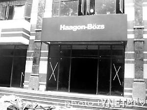 原來,這些商鋪的招牌乍一看是大牌,可再仔細(xì)看看,不對啊,怎么全部是山寨版?真是大跌眼鏡!從東往西第一家是大名鼎鼎的運(yùn)動品牌李寧,“錯了!這個(gè)叫李明LI-MING!钡诙沂切≠Y最愛的星巴克STARBUCKS,“又錯了,這個(gè)叫BUCKSSTAR”。其他的大牌也如法炮制,必勝客成了“必勝糊”,哈根達(dá)斯成了“哈根波斯”,包括屈臣氏、seven-eleven等名牌都被惡搞了一把。最令人叫絕的是,麥當(dāng)勞的經(jīng)典m形標(biāo)志,被多加了一個(gè)彎,成了“3扇門”。記者看到,這些掛了招牌的商鋪并沒有一家正式開張。