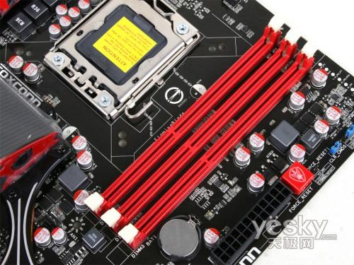 內(nèi)存支持方面,富士康FLAMING BLADE提供了3條DDR3內(nèi)存插槽,支持三通道DDR3 1066/1333/1600(超頻模式)內(nèi)存,最大能夠支持到12GB的內(nèi)存容量。