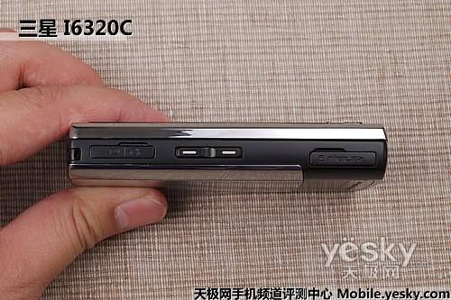 三星I6320C的microSD卡槽和數(shù)據線、充電器I/O被設計在左側,I/O采用三星自主標準,音量控制鍵被設計在二者中間。而機身右側只有一顆按鍵,將兩項插槽集中在左側,目的是為該機CMMB移動電視的天線“讓位”。