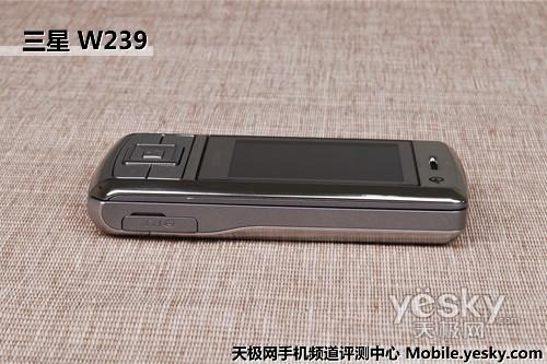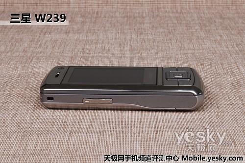 三星W239在機身左側設計了音量控制鍵,按鍵凸起明顯,便于在不方便拿起手機的情況下,控制音量。