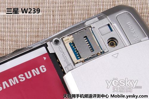 機身右側下方是該機耳機、數(shù)據(jù)線、充電器三合一接口,采用三星自主標準。而microSD卡插槽則需要打開電池后蓋才能看到,同樣支持熱插拔。